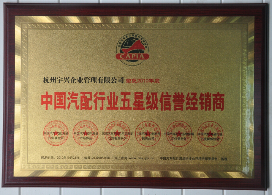 中國汽配行業(yè)五星級信譽經(jīng)銷商中國汽車汽配用品行業(yè)聯(lián)合會理事單位